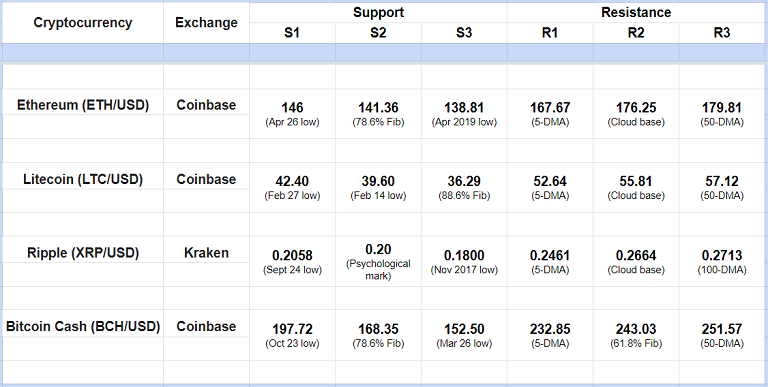 Major Cryptocurrency Intraday Support Resistance Levels