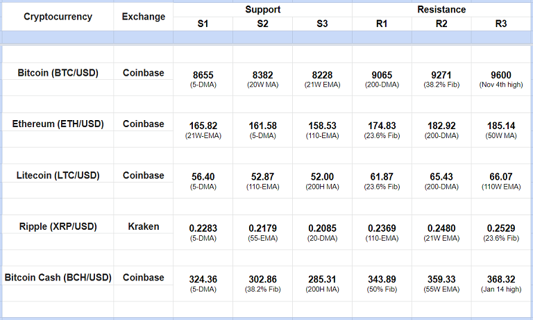 Major Cryptocurrency Intraday Support Resistance Levels