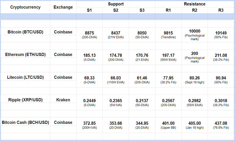 Major Cryptocurrency Intraday Support Resistance Levels