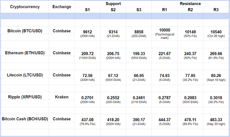 Major Cryptocurrency Intraday Support Resistance Levels