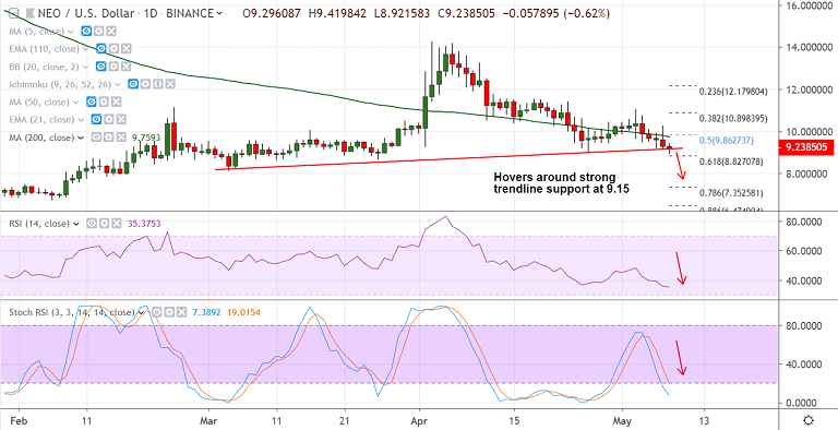 - NEO/USD edges higher from session lows at 8.9215, bias bearish