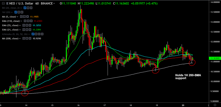NEO/USD was trading 5.48% lower on the day at 11.05 at 09:20 GMT