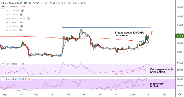 NEO/USD is showing signs of a bullish trend shift, price set to scale new heights.