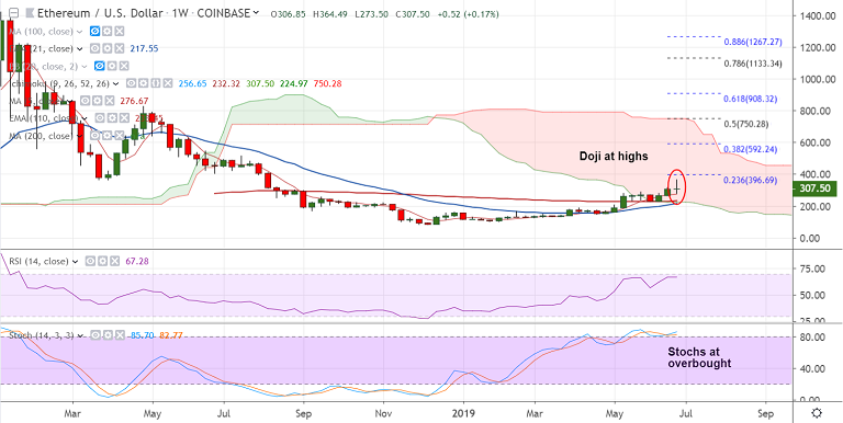 ETH/USD was trading 4.65% higher on the day at 307.60 at 10:00 GMT.