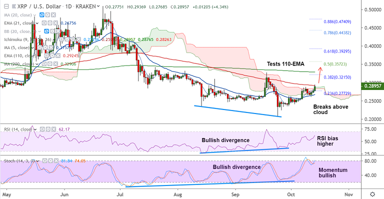 XRP/USD spiked higher on the day to hit 4-week high at 0.29369.
