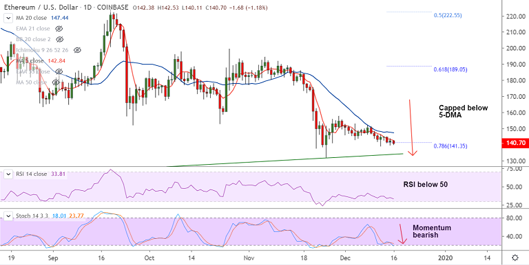 Upside remains capped at 5-DMA, technical indicators are biased lower, momentum with the bears.