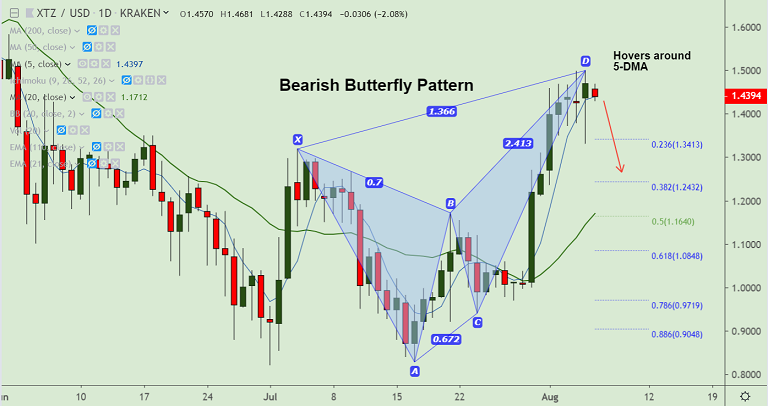 Further, a 'Bearish Butterfly' pattern confirmed on the daily charts adds to the bearish bias.