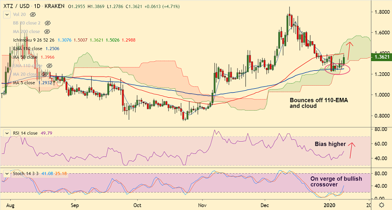XTZ/USD was trading 4.71% higher at 1.3621 at 11:15 GMT, after closing largely unchanged in the previous session.