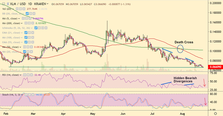 Stellar Lumens extends weakness, hits multi-month lows at 0.06542.