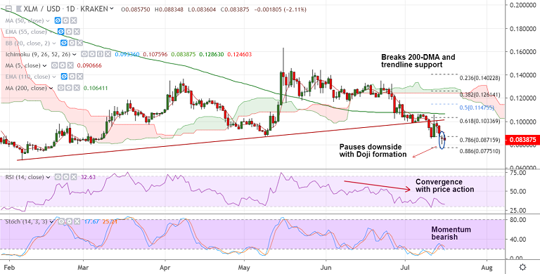 The pair is attempting minor recovery after Doji formation on Monday's candle.