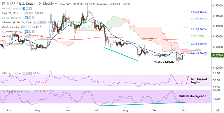 On the flipside, failure at 21-EMA and retrace below 200H SMA negates bullish bias.