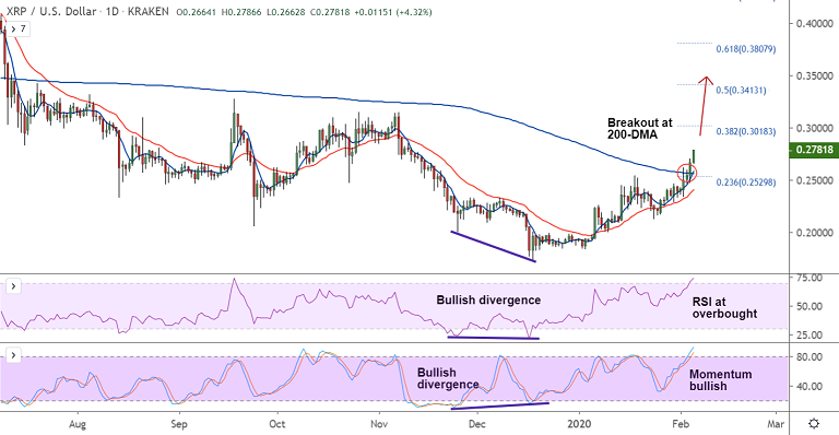 XRP/USD is extending bullish streak for the 6th straight session, momentum with the bulls.