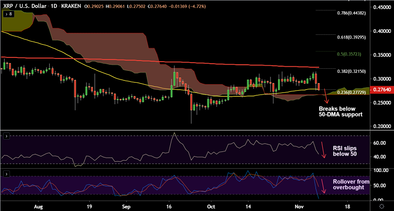 XRP/USD is extending previous sessions losses, slips below 55-EMA support.