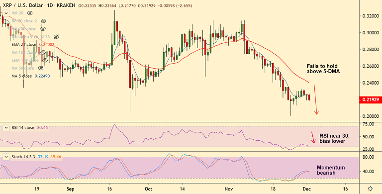 XRP/USD starts the week on a bearish note, extends weakness below 5-DMA.
