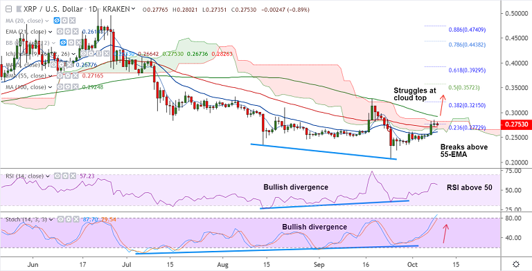 XRP/USD is trading rangebound on the day at 0.2754 at 06:20 GMT, with session high at 0.2802 and low at 0.2735.