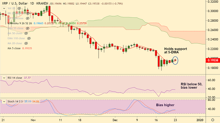 XRP/USD was trading rangebound on the day, bias remains neutral.