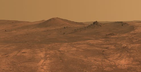 An artist’s concept portrays a NASA Mars Exploration Rover on the surface of Mars. NASA/JPL, CC BY