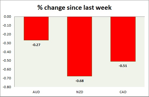 Strength meter (since last week) – Aussie -0.27%, Kiwi -0.68%, Loonie -0.51%