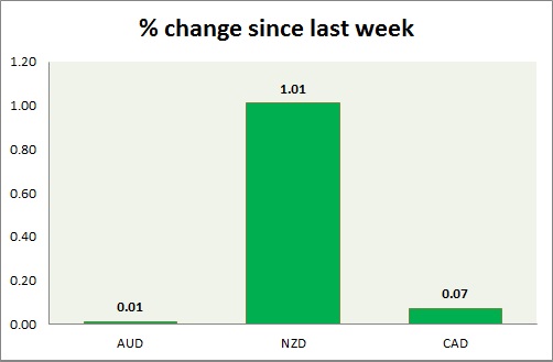 Strength meter (since last week) – Aussie -0.16%, Kiwi -0.03%, Loonie -0.33%