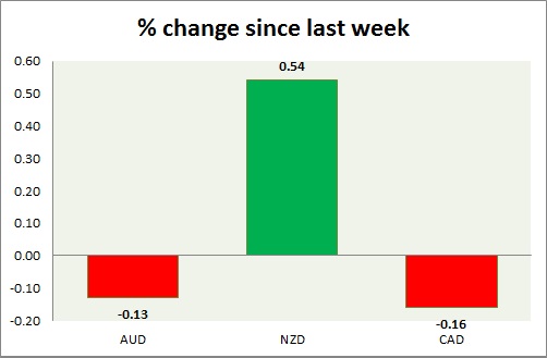 Strength meter (since last week) – Aussie -0.13%, Kiwi +0.54%, Loonie -0.16%