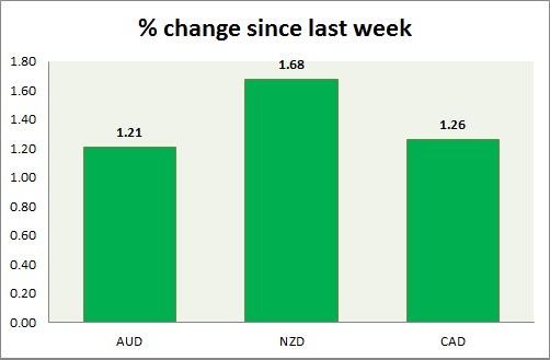 Strength meter (since last week) – Aussie +1.21%, Kiwi +1.68%, Loonie +1.26%