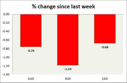 Strength meter (since last week) – Aussie -0.76%, Kiwi -1.19%, Loonie -0.68%