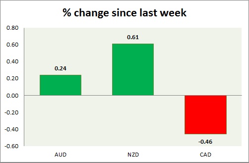 Strength meter (since last week) – Aussie +0.24%, Kiwi +0.61%, Loonie -0.46%
