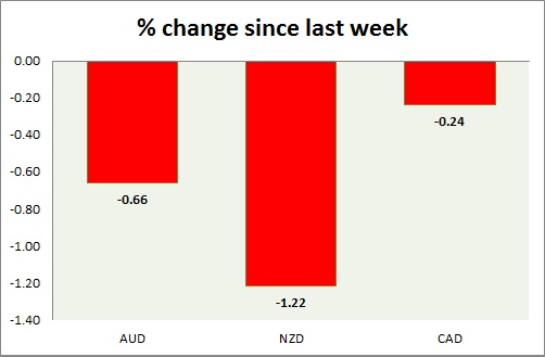 Strength meter (since last week) – Aussie -0.66%, Kiwi -1.22%, Loonie -0.24%