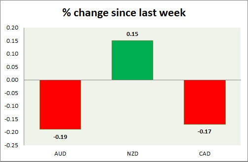 Strength meter (since last week) – Aussie -0.19%, Kiwi +0.15%, Loonie -0.17%