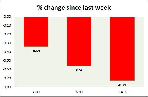 Strength meter (since last week) – Aussie -0.34%, Kiwi -0.56%, Loonie -0.73%