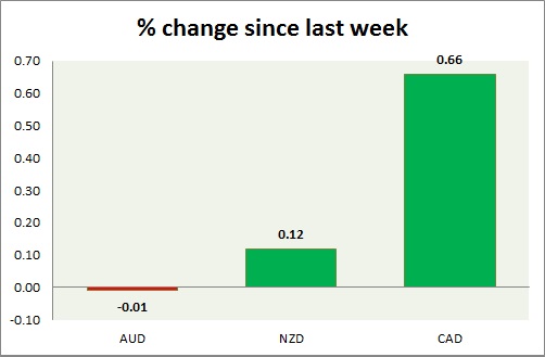 Strength meter (since last week) – Aussie -0.01%, Kiwi +0.12%, Loonie +0.66%