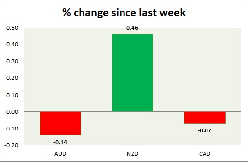 Strength meter (since last week) – Aussie -0.14%, Kiwi +0.46%, Loonie -0.07%