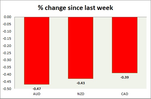 Strength meter (since last week) – Aussie -0.47%, Kiwi -0.43%, Loonie -0.39%
