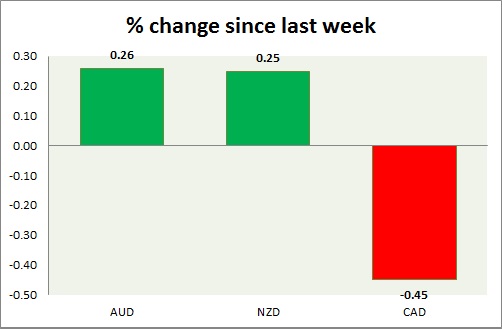 Strength meter (since last week) – Aussie -0.19%, Kiwi -0.09%, Loonie -0.00%