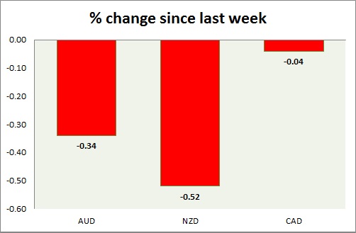 Strength meter (since last week) – Aussie -0.34%, Kiwi -0.52%, Loonie -0.04%