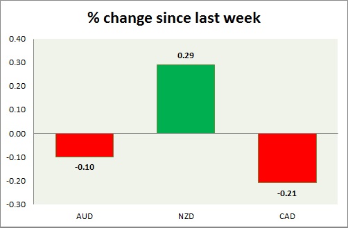 Strength meter (since last week) – Aussie -0.10%, Kiwi +0.29%, Loonie -0.21%