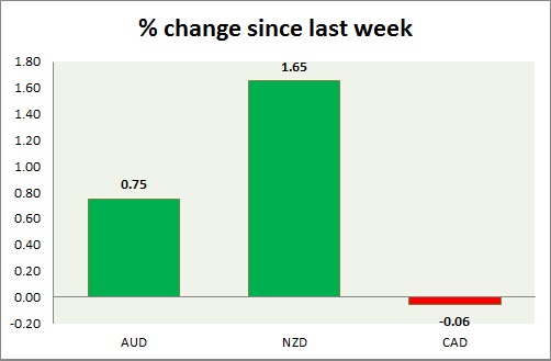 Strength meter (since last week) – Aussie +0.75%, Kiwi +1.65%, Loonie -0.06%