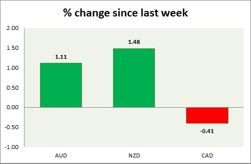Strength meter (since last week) – Aussie +1.11%, Kiwi +1.48%, Loonie -0.41%