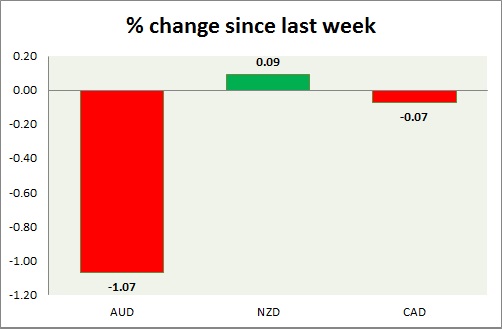 Strength meter (since last week) – Aussie -1.07%, Kiwi +0.09%, Loonie -0.07%