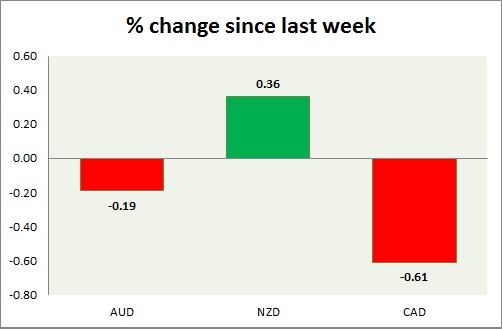 Strength meter (since last week) – Aussie -0.19%, Kiwi +0.36%, Loonie -0.61%