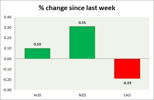 Strength meter (since last week) – Aussie +0.10%, Kiwi +0.31%, Loonie -0.19%