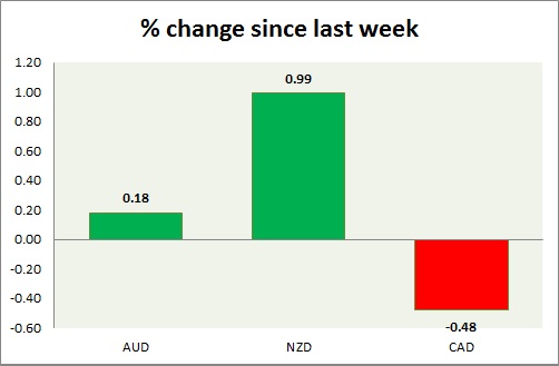 Strength meter (since last week) – Aussie +0.18%, Kiwi +0.99%, Loonie -0.48%