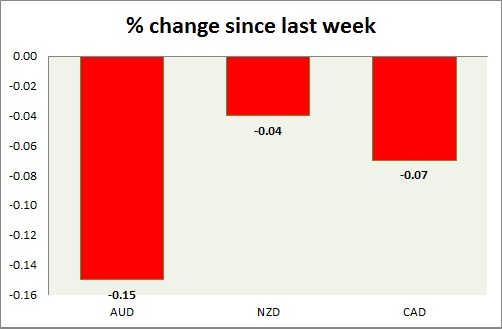 Strength meter (since last week) - Aussie -0.15%, Kiwi -0.04%, Loonie -0.07%.
