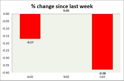 Strength meter (since last week) – Aussie -0.17%, Kiwi +0.00%, Loonie -0.38%