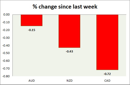 Strength meter (since last week) – Aussie -0.15%, Kiwi -0.43%, Loonie -0.72%