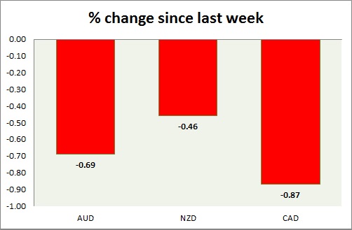 Strength meter (since last week) – Aussie +0.41%, Kiwi +0.83%, Loonie +0.07%