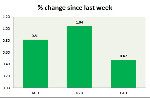 Strength meter (since last week) – Aussie +0.81%, Kiwi +1.04%, Loonie +0.47%