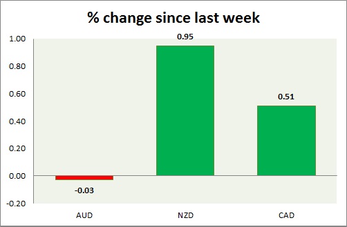 Strength meter (since last week) – Aussie -0.03%, Kiwi +0.95%, Loonie +0.51%