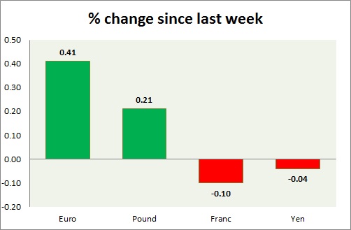 Strength meter (since last week) – Euro +0.41%, Franc -0.10%, Yen -0.04%, GBP +0.21%