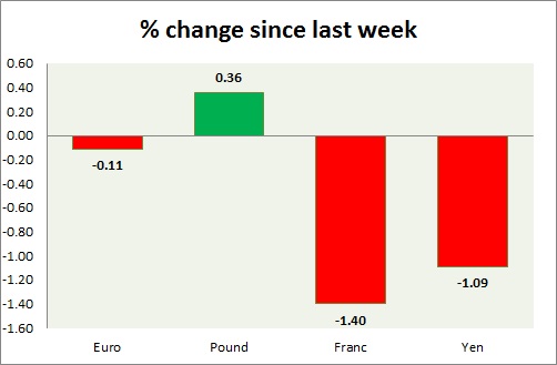 - Franc is the worst performer this week.